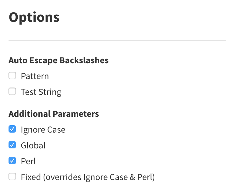 - The other 2 options concerning backslashes allow you to write an R flavored regex.