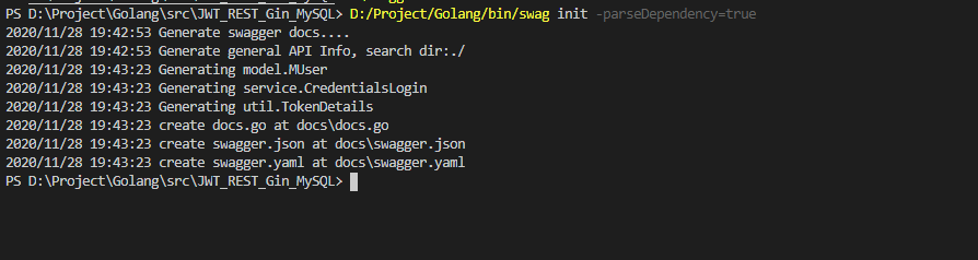 main.go. Generate the swagger docs with theswag initcommand that wrap in the bash.\swaggo.sh