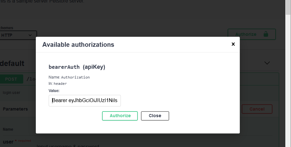 Copy access_token from login response,and place it to Authorize with add a word Bearer. This wil be store the token for the rest API.