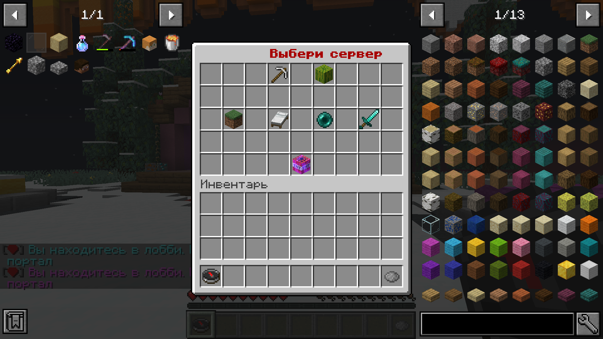 Further, when I clicked RMB on 1 slot, the inventory opens, where I need to click on the 6th slot at the very top, on the watermelon, also RMB, and that's it, I'm on the server. Who knows what commands to enter to perform these actions? I try to enter the following: /useitems, /inventory 1 click 6 right. But its doesn't work, please help)