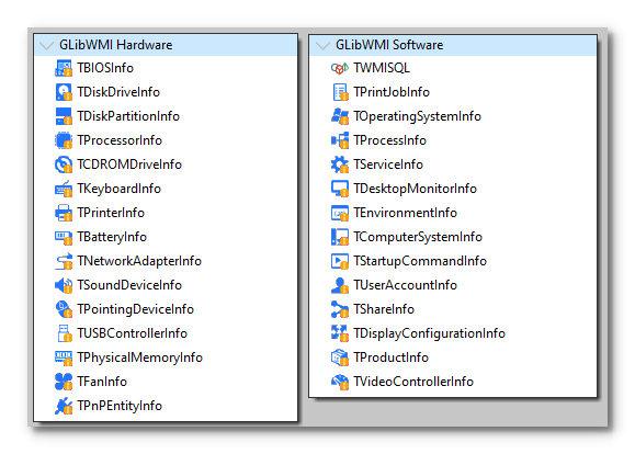 GLibWMI es una librería/biblioteca de componentes para Delphi, enfocados a la Administración de Sistemas Windows. Están basados en la WMI de Windows (Windows Management Instrumentation).