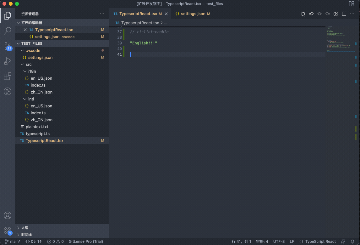 "reactIntlLinter.localLanguage": "en", // 本地语言为英语