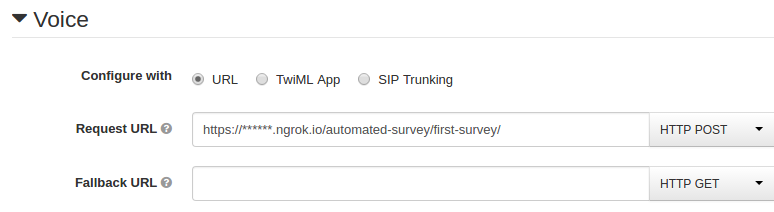 it towards your ngrok-exposed application /automated-survey/first-survey/ route. Set