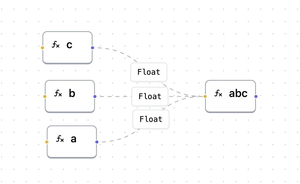 M3 creates an object map automatically based on your Runtime. This means that you should make the first call after creating an object and every time you change useMeta. In debug mode, your useFlow and useDep will be ignored. Let's create three simple objects called a, b, and c, and merge them into an abc object. Call the abc function and see the interactive graph.