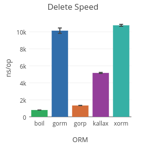 BenchmarkGORPDelete/gorp-8          1000000     1335 ns/op     352 B/op    13 allocs/op