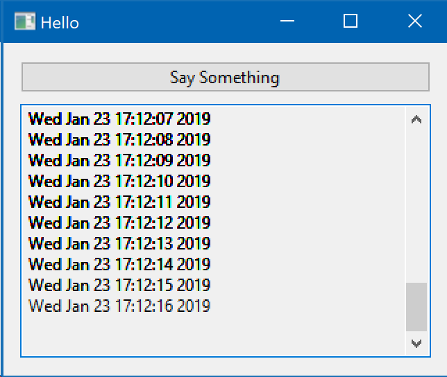 The issue is most readily demonstrated with a screenshot of running the timer example on Windows: