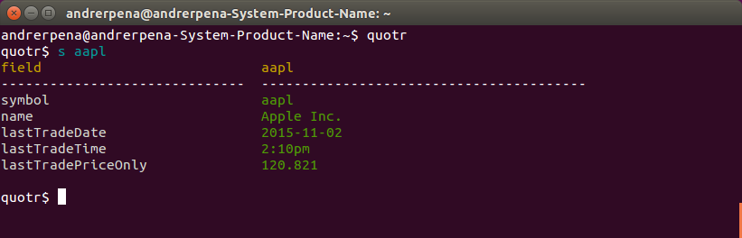 v aapl (displays the last 10 days variation of the `aapl` symbol, which is the default in case no interval is specified)