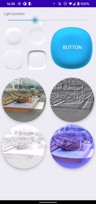 This library is the easiest way to use OpenGL shaders as an Android View. You just simply need to add ShaderView in your layout and set up shaders. The advantage of this library that you can use ShaderView in your hierarchy as a regular View.