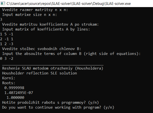 SLE-solver Housholder reflection QR. System of linear equations. We have SLE (System of linear equations): For example: The result is: