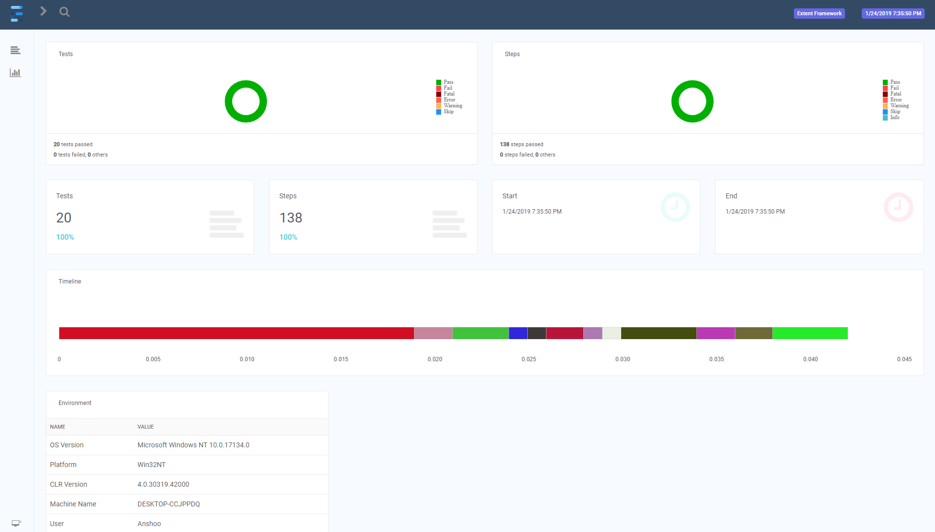 The default usage creates a HTML report using the default version 4 ExtentHtmlReporter