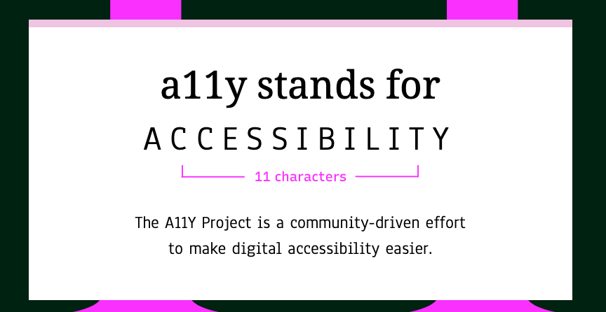 Add something similar to what the a11y project did on their page to describe the meaning of a11y. Image description quoted below: