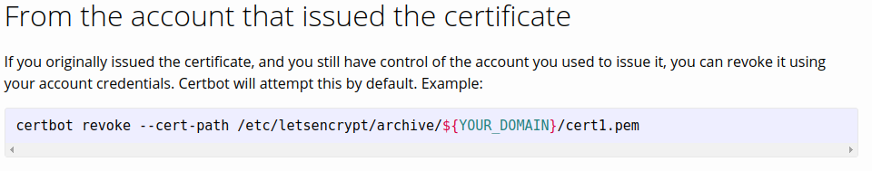 The code blocks on our site always have horizontal scroll bars, even when those are not necessary. See, for instance, this screenshot from https://letsencrypt.org/docs/revoking/: