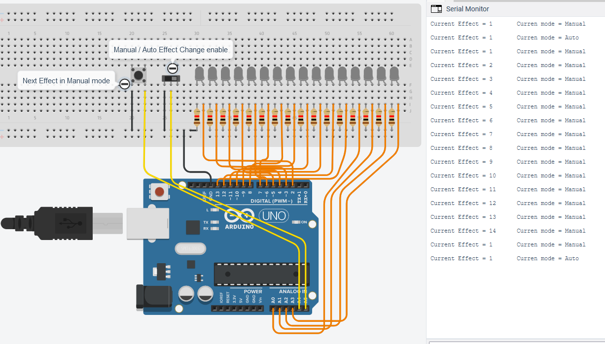 An example of how to use an array of up to 16 LEDs with single dimentioned effect arrays.