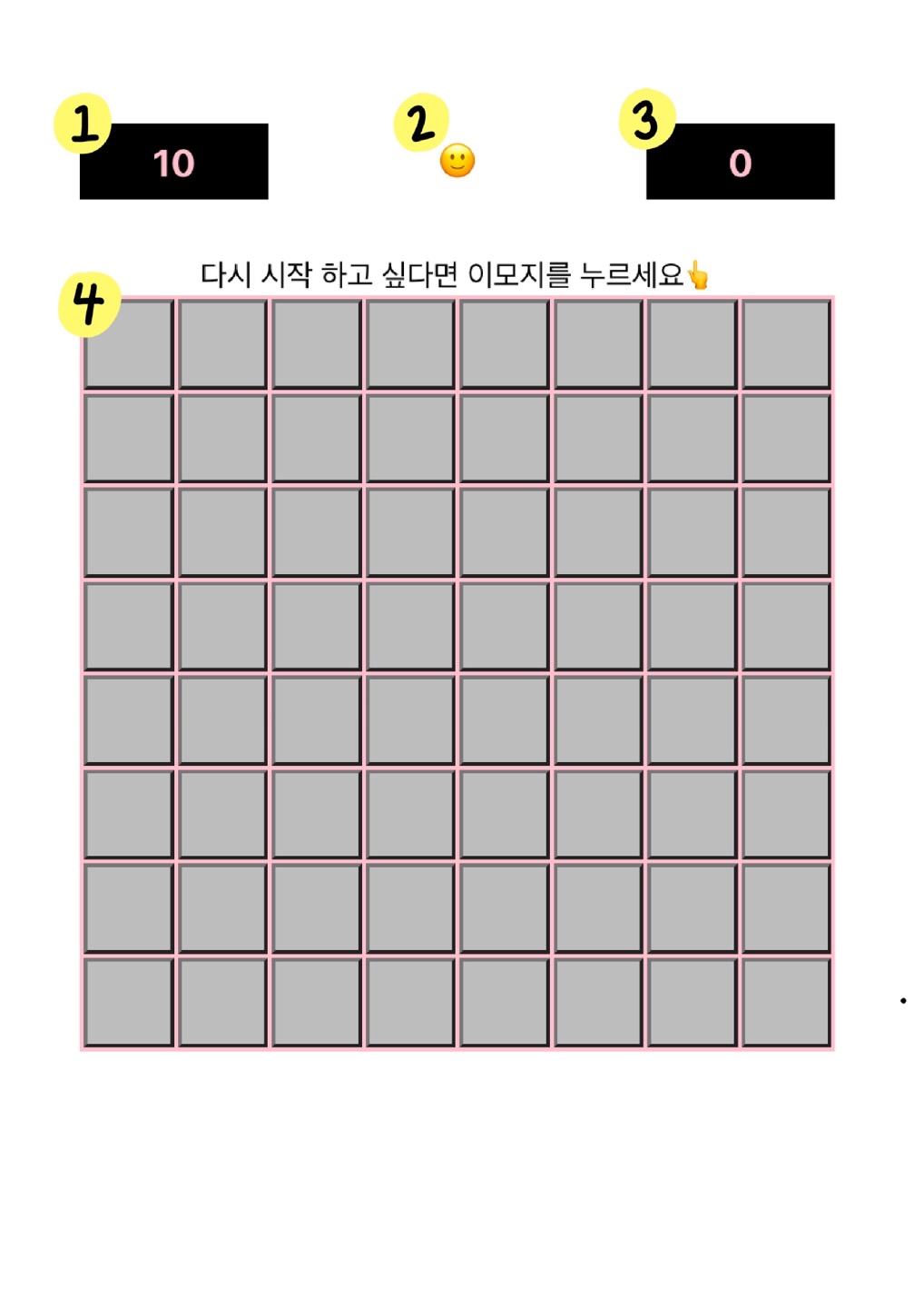 - 다시 시작 버튼 ( 게임에서 지면 '😈', 이기면 '😎', 기본 '🙂 ' )