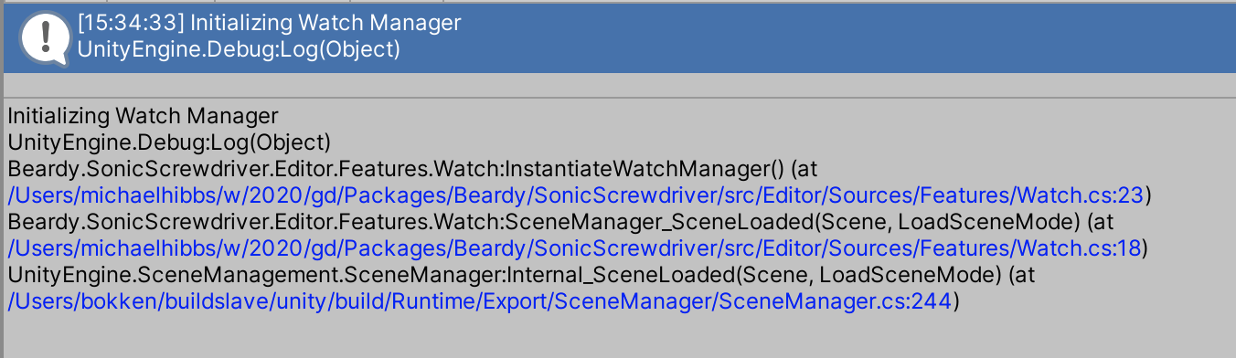 Currently there is a Debug.Log inside the Features/Watch.cs file, which is getting output into the console for all projects. To fix this, we should wrap that code (either inline or abstracted into our own logging class) with a check to see if Settings.DebugMode is true.