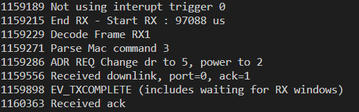 Yes the transmitting power is reduce when the network send this type of MAC command. For example for EU868 the transmission power is -2*the value send by the server (value define in lorawan regional settings). So the lib ask to sx1276 to transmit with power : But the sx1267 power can be set from +2 to +17, so the minimum TX power asked is always +2 (most board do use PA pin see PA_BOOST_PIN) |