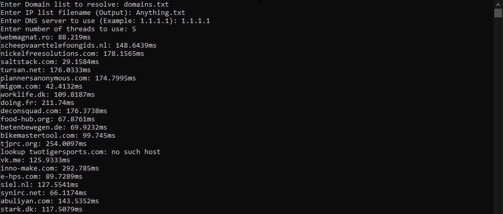 - Results (Avg. Resolve time, Domains resolved, Domains that failed to be resolved)