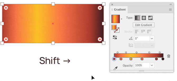 Reverse the order of gradient colors and their opacity. Does not reverse the locations of color stops.