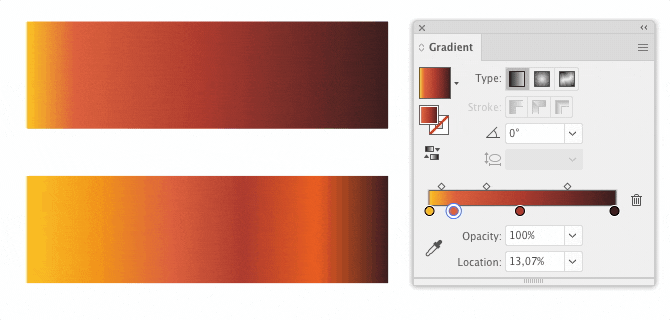 Removes intermediate color stops of gradient fill and stroke for selected objects.