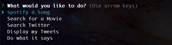 LIRI is a command line node app that allows users to choose what type of data they wish to search for and what information to search under each category. It returns the information to the console and also stores the data in the log.txt file. You will need to add API keys for twitter and spotify in keys.js.