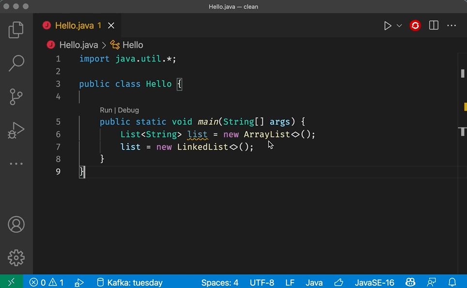 If you repeat the completion step on the LinkedList constructor, the completion doesn't provide you with a list of constructors for some reason, only the type, and applying the completion item doesn't break the code: