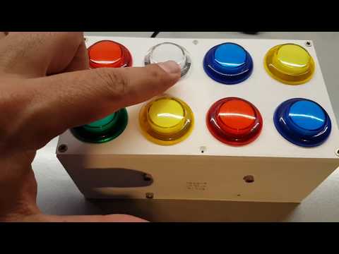 Sound box like a board to launch samples stored as 8bit full-rate (32000) mono WAV files named from 1.WAV to 8.WAV (16.WAV) on a SD card with arcade buttons using a multiplexer