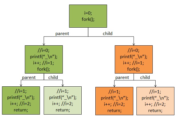printf("ppid=%d, pid=%d, i=%d \n", getppid(), getpid(), i);
