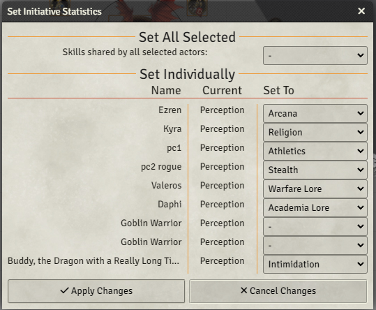Provides a dialog to quickly set which statistic the actors of any/all selected tokens use for initiative.