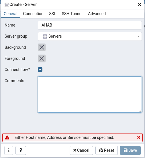 Na aba de connection vamos definir o nosso host que será o “localhost” e a porta que será “5432” o restante vamos manter, clicamos em save e temos nosso servidor.