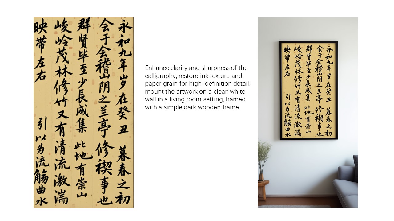 Finally, let's walk through a concrete image editing example to demonstrate how to use a chained editing approach to progressively correct errors in a calligraphy artwork generated by Qwen-Image: