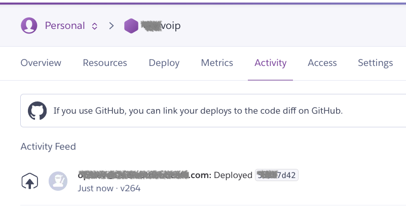 MyVoIPSuiteto the name of your actual application found in Heroku under https://dashboard.heroku.com/appsActivitytab.The next time you want to update your code, you only have to: