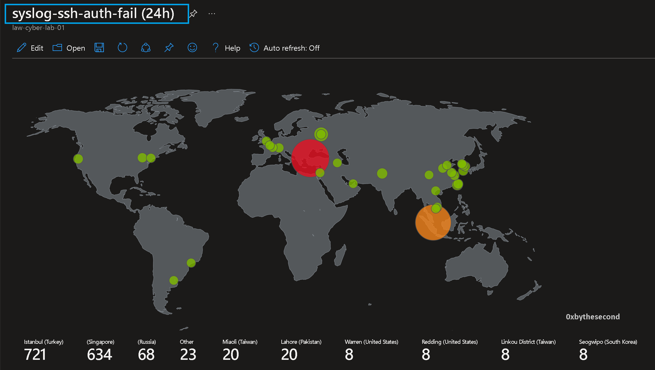 The depicted attack map elucidates the multitude of syslog authentication failures encountered by the Linux server I provisioned, elucidating the presence of unsanctioned endeavors to gain entry from external sources beyond the confines of the local network. This serves as an emphatic reminder underscoring the indispensability of fortifying Linux servers with robust authentication protocols and diligently scrutinizing system logs to detect and thwart potential intrusions.