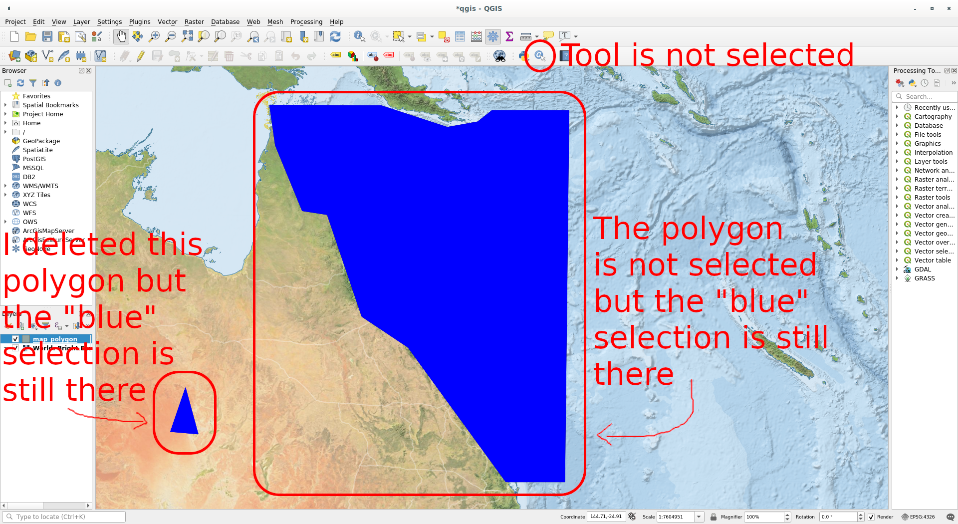 - Deleting the polygon do not get rid of the "blue" sketch.