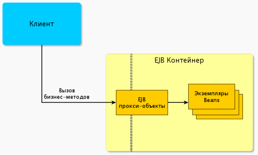 Как я понял, мы не обращаемся к EJB напрямую, а взаимодействуем с прокси-объектами.