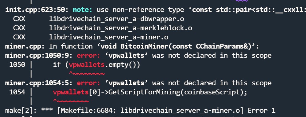 tried to make, make failed; `./configure --disable-wallet --without-gui --without-miniupnpc --datadir=/home/user/crypto` vpwallets was not declared in this scope