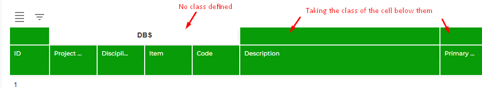 The problem with this, is that when the new header row is created, all of the cells which are not defined are taking the className of the cell below them, so it looks like this: