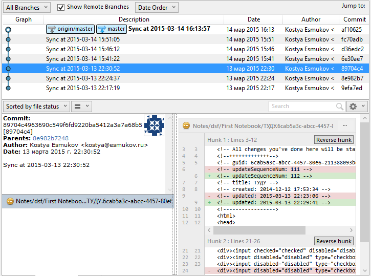 - Some Evernote clients (ex. ios) make note's html look ugly. This makes diff hard to read. Not a big deal.