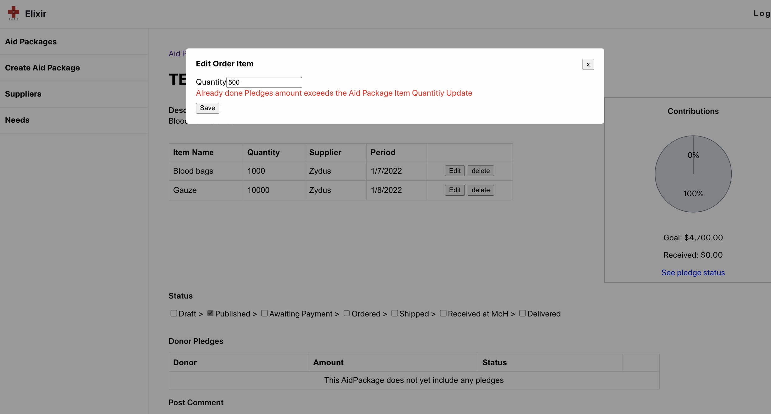 - Go to prod, aid package TEST3 | Blood Bank Supplies