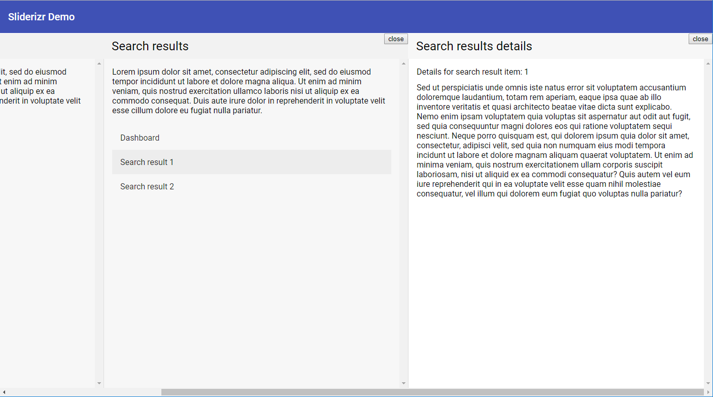 sliderizer is an Angular library for displaying your app pages in a stacked, horizontal orientation