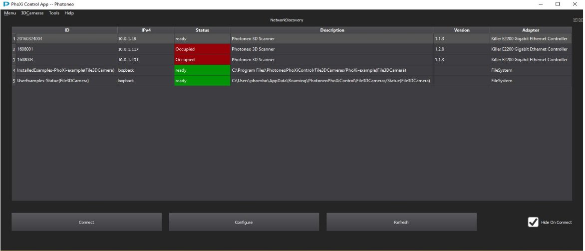- Start PhoXiControl application