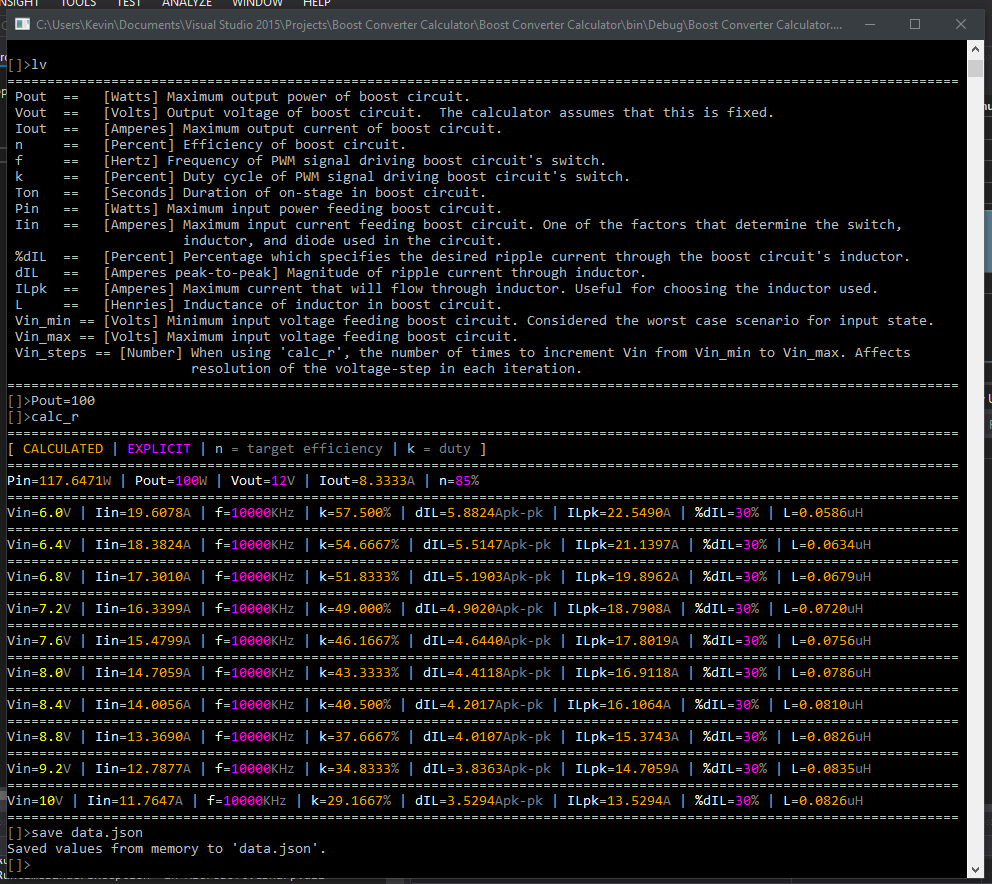 This is a simple C# console interactive application which allows you to 'configure' a boost converter circuit parametrically. All values considered are purely theoretical.