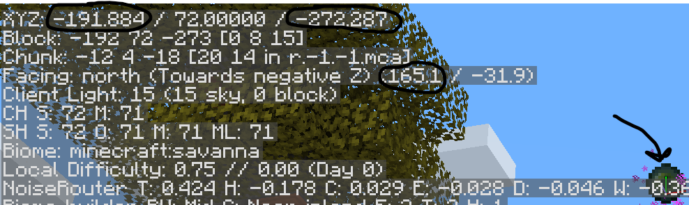 The equations above were created by samkomododragon on Discord. I was given permission to code these equations in C++ and run them in a Linux terminal. Please remember that the coordinates calculated are not 100% exact, but majority of tests have shown the distance between the estimated position and the exact position of the stronghold is very low.