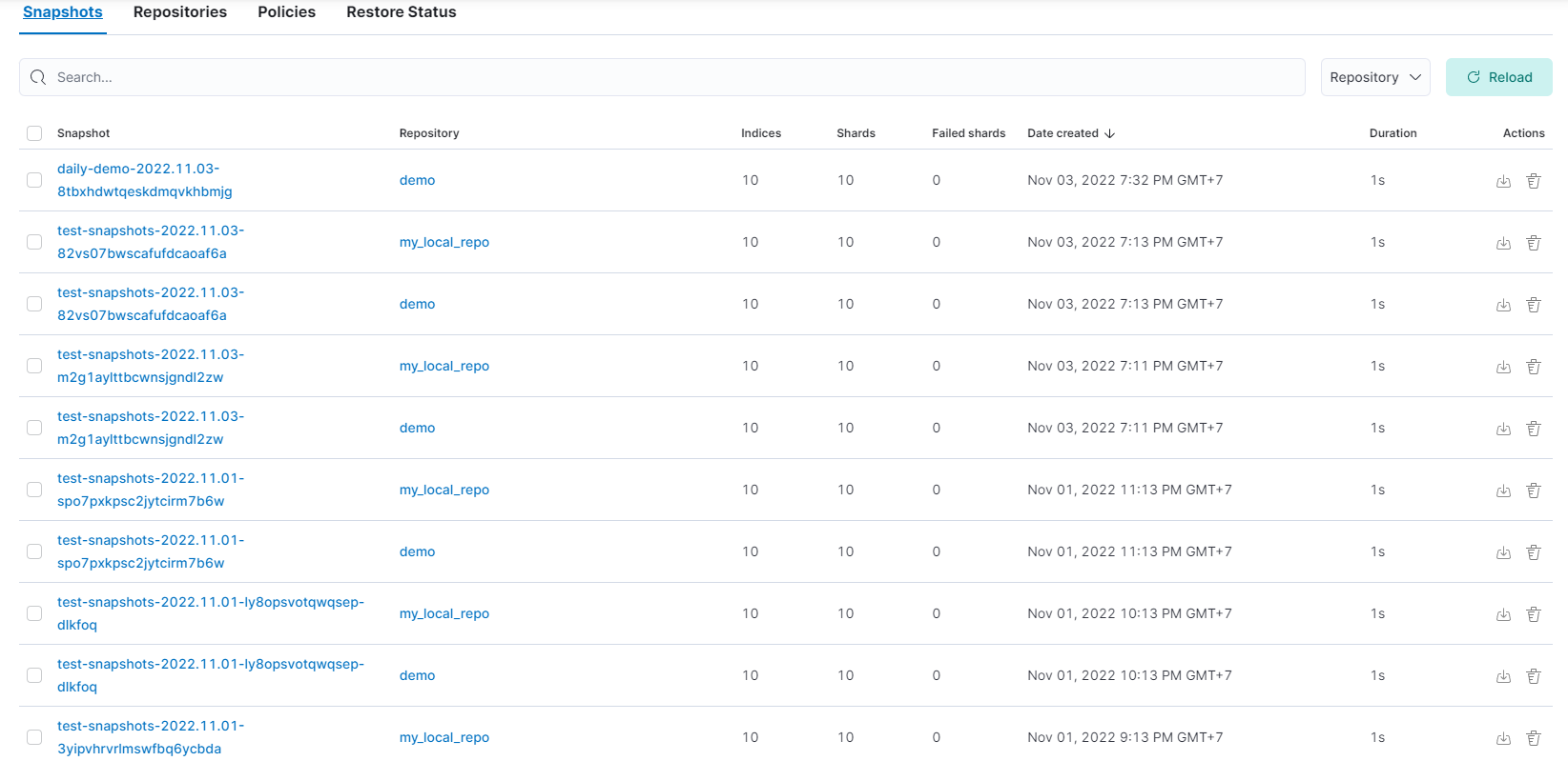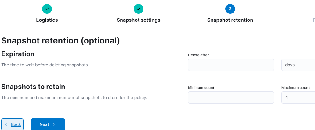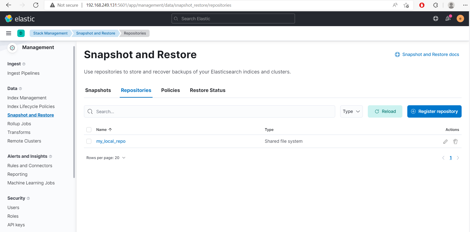 - Go to Stack Management -> Snapshot and Restore -> Repositories