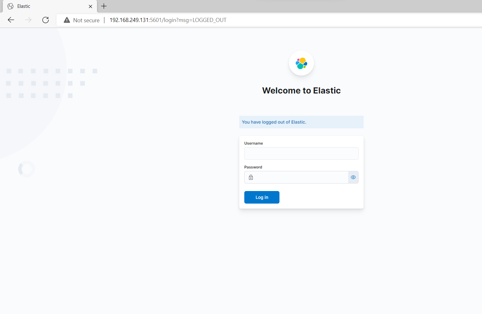 - When all 3 nodes are healthy, access the Kibana web UI by opening http://IP-address-of-the-host:5601 in a web browser and use the following (default) credentials to log in:
