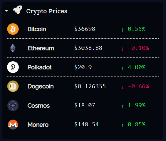 --widget-text-color- Text color, defaults to--primary--widget-background-color- Background color, defaults to--background-darker--widget-accent-color- Accent color, defaults to--background