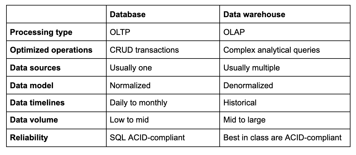 - Use for datawarehousing