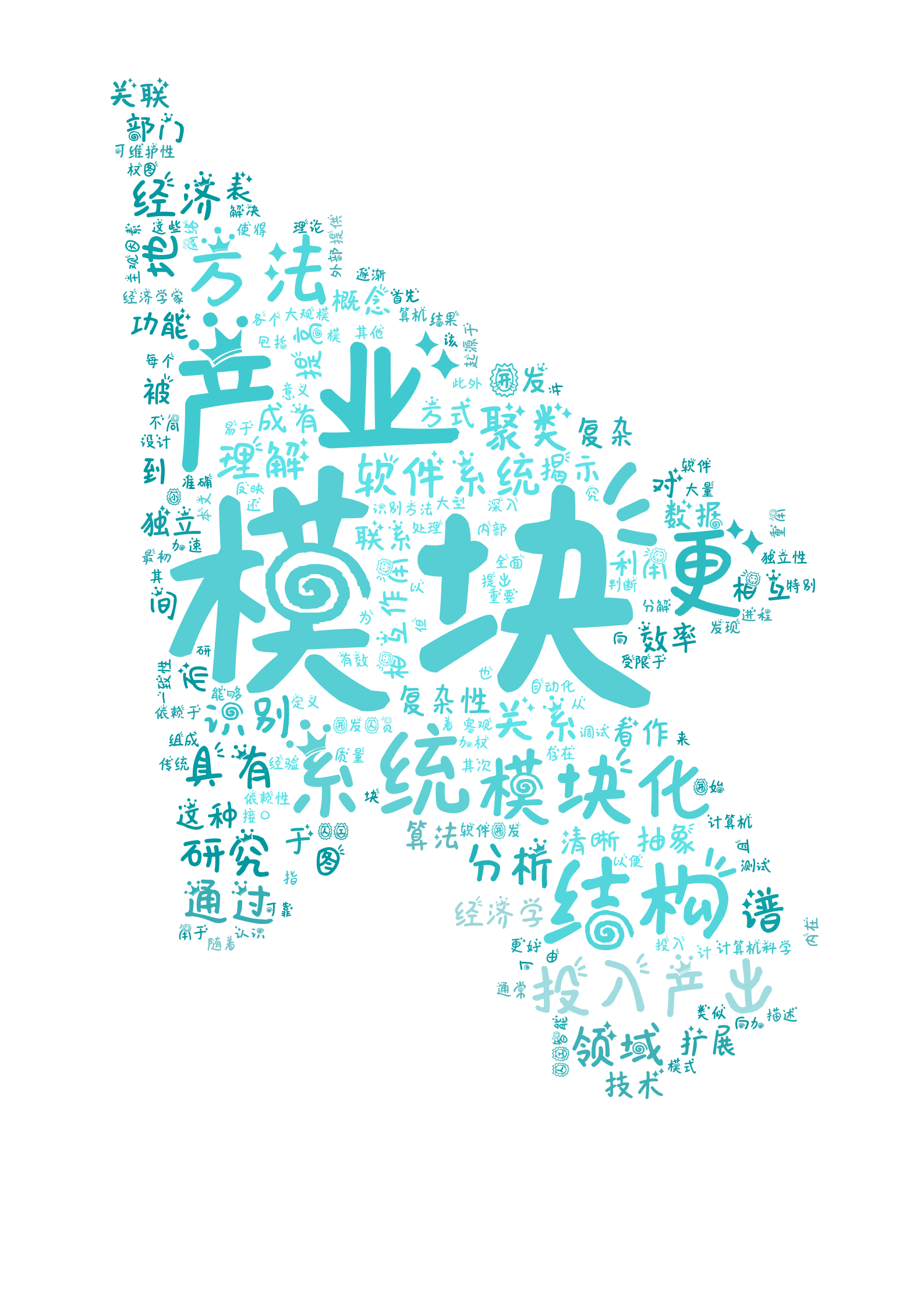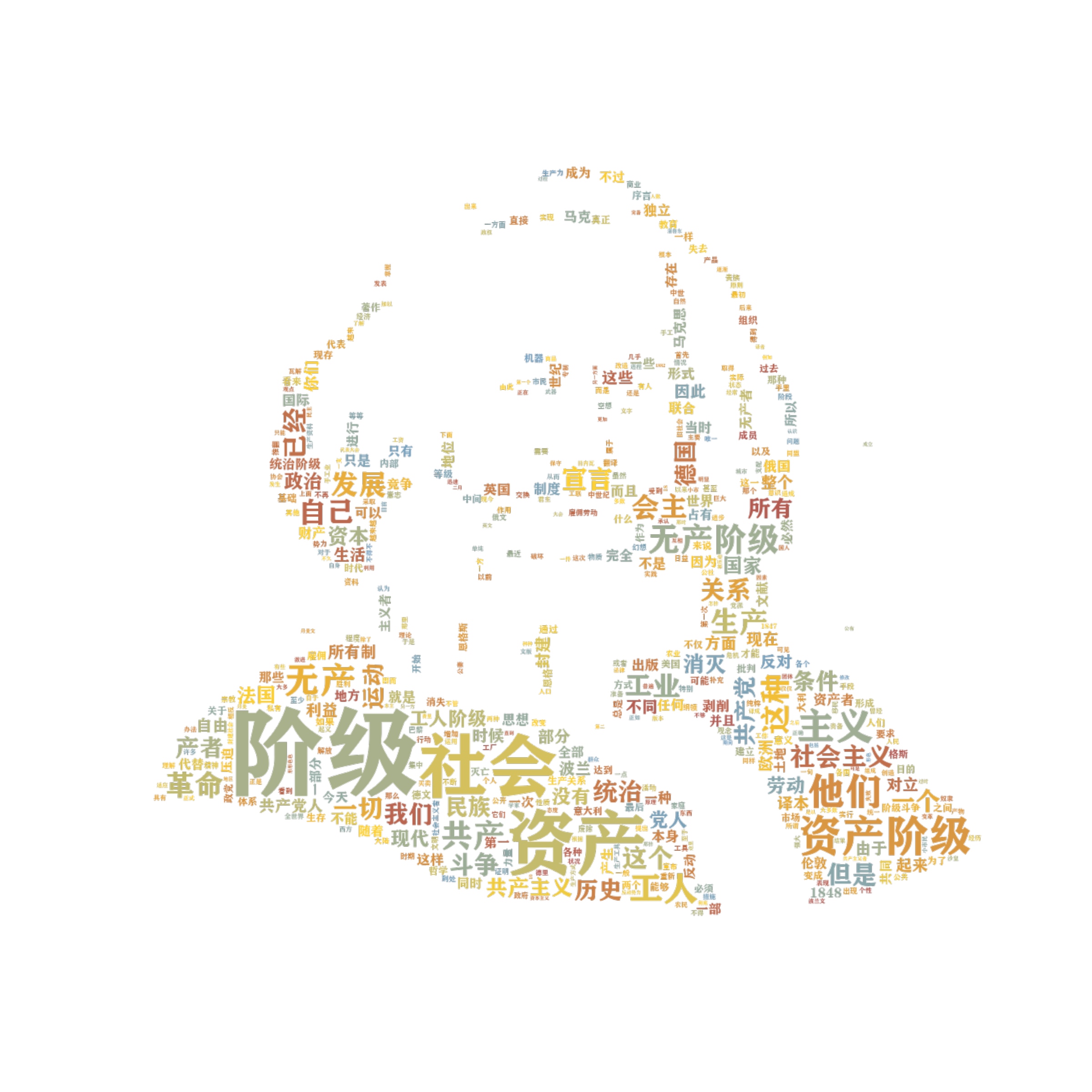 Description: This is two examples of Chinese word cloud based on the introduction part of a working paper. The first example uses a cursor as masking background, fancy font in the picture and shows the main topic of the paper, which is modular and industry. And the second one is a word cloud based on the communist manifesto text, with a mask of the portrait of Marx.