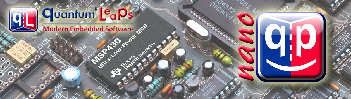 QP-nano (Quantum Platform Nano) is an ultra-lightweight, open source Real-Time Embedded Framework (RTEF) for building modern embedded software as systems of asynchronous, event-driven active objects (actors). The QP-nano framework is a member of a larger QP family consisting of QP/C, QP/C++, and QP-nano frameworks, which are all strictly quality controlled, thoroughly documented, and commercially licensable.