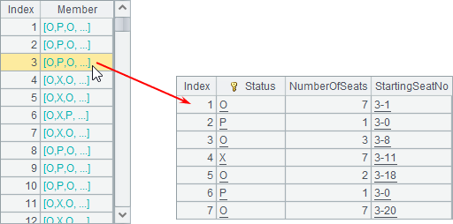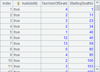 | 15 | =A13.(r=#,rn=A14(#),~.groups@o(~:Status;count(~):NumberOfSeats, r/"-"/rn(#):StartingSeatNo)) |