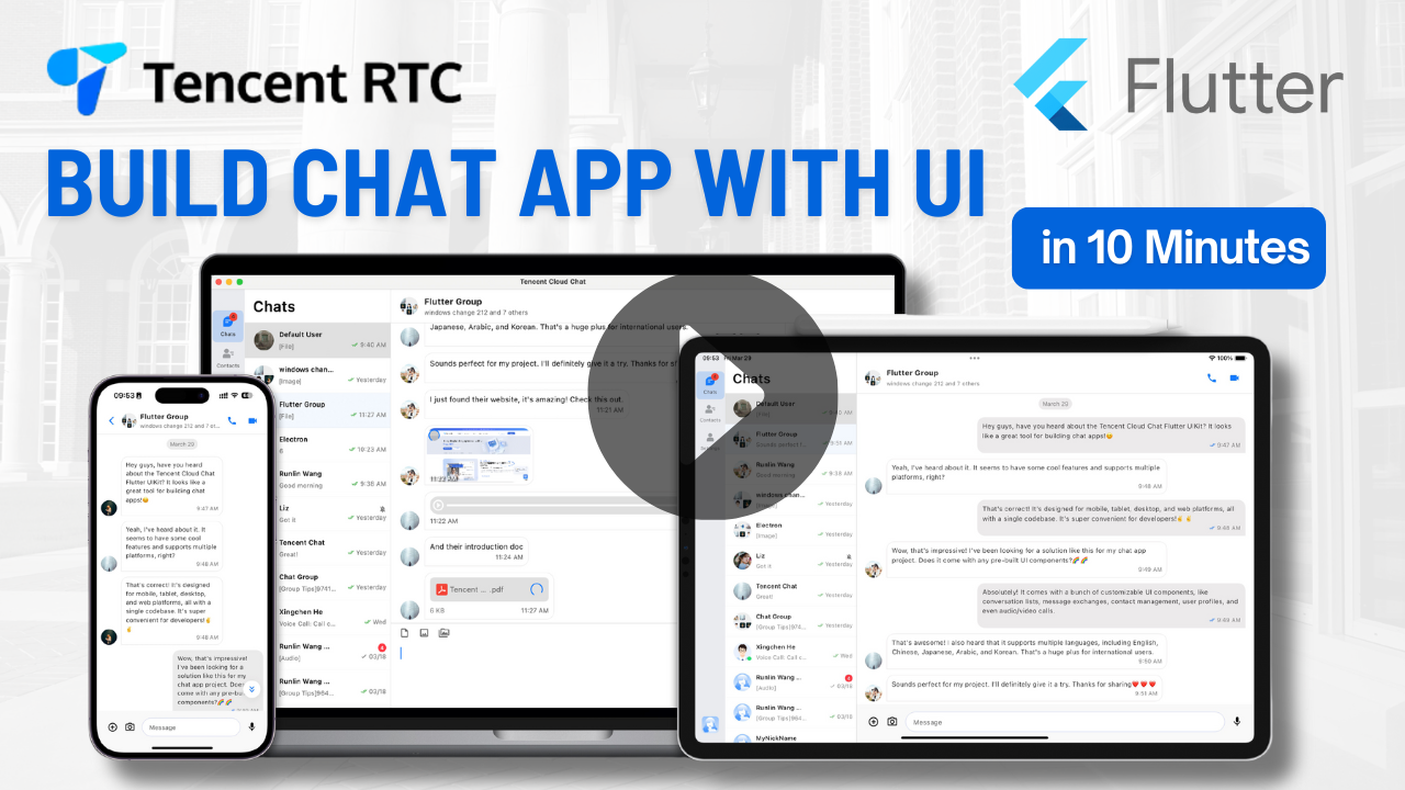 The following guide describes how to quickly build a simple chat application using Flutter TUIKit. Refer to the appendix if you want to learn about the details and parameters of each widget.